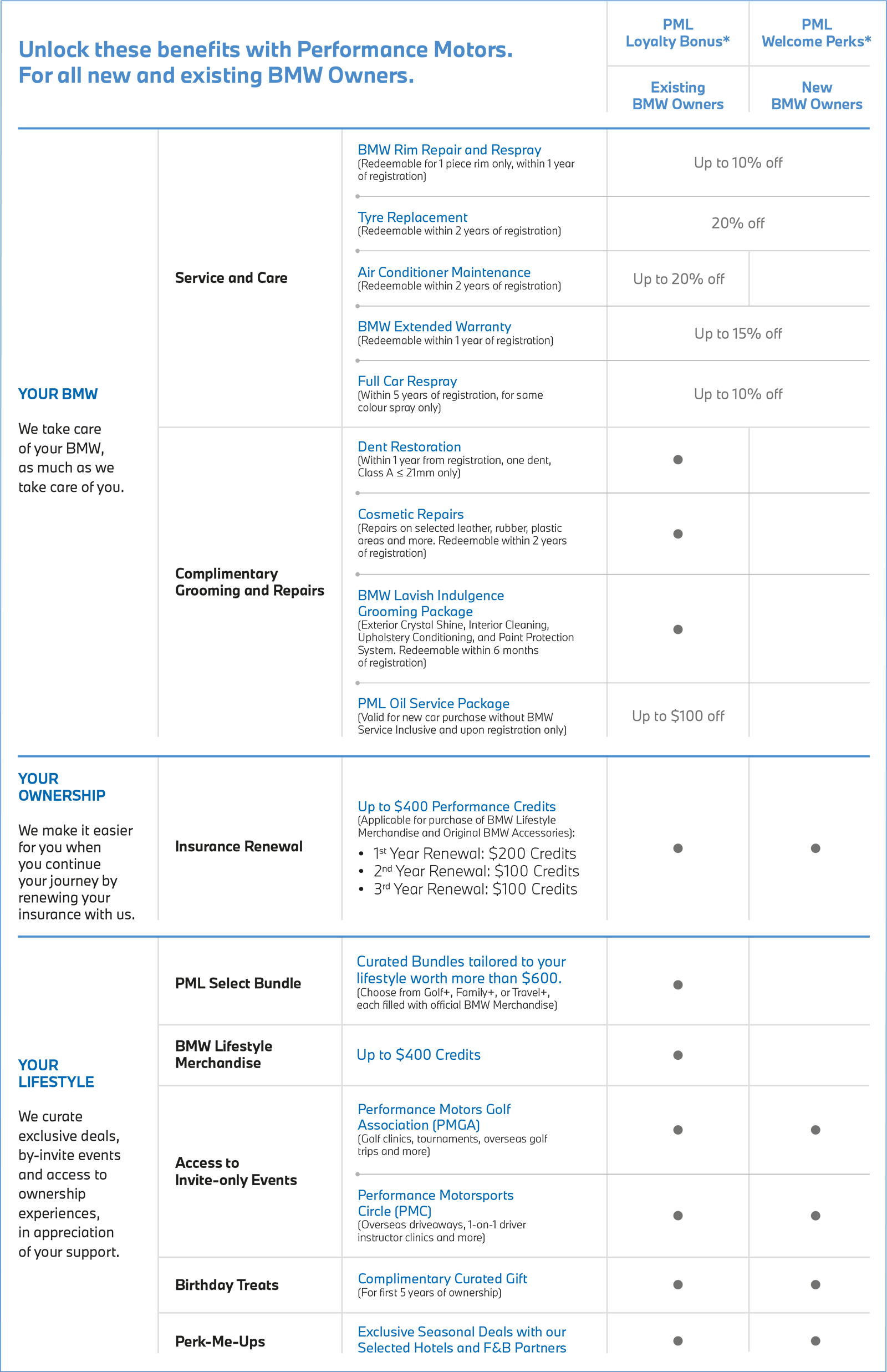 All new and existing BMW owners can enjoy the exclusivity of the PML Rewards when they purchase a new BMW from Performance Motors.